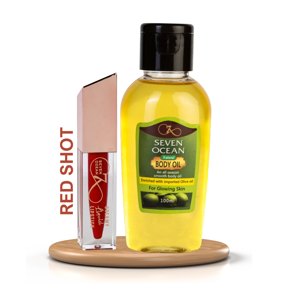 SEVEN OCEAN RED SHOT LIPSTICK WITH SEVEN OCEAN NATURAL BODY OIL 100ml (PACK OF 2 COMBO)